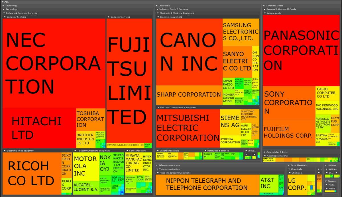 - Computer Hardware : Nec Corporation (31 700 priority patents)